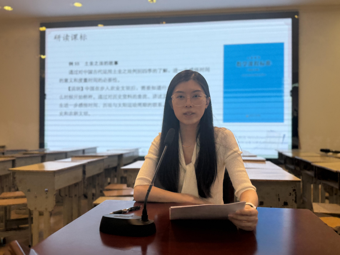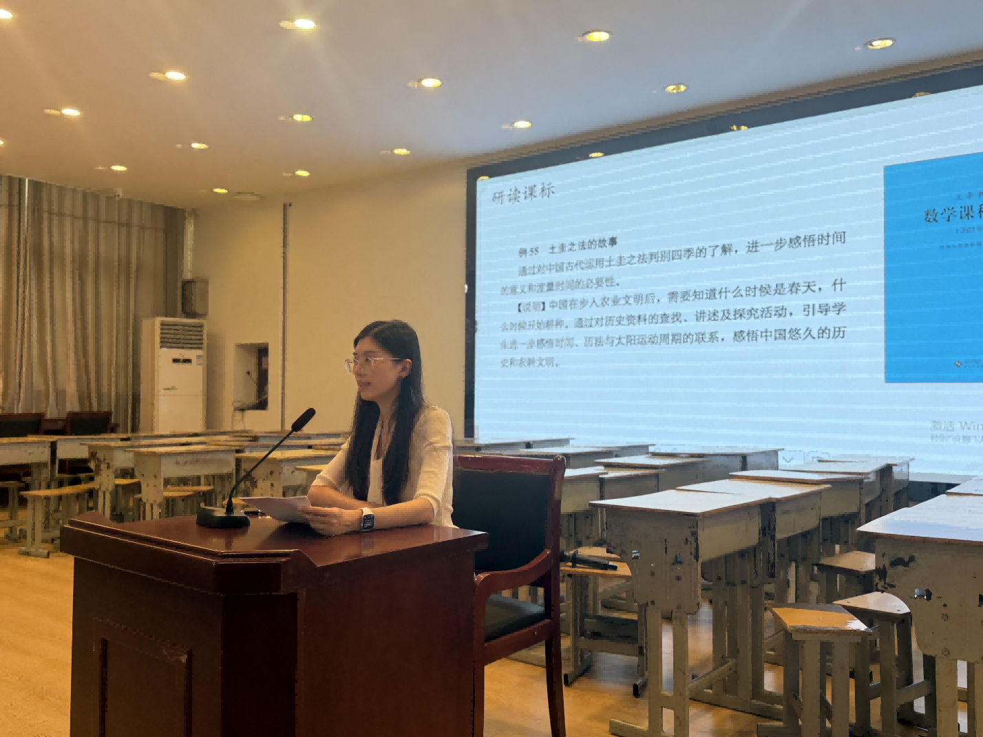 涵楚老师带来《探索土圭之法》课例汇报,以古代天文仪器“土圭”为载体,将传统历法智慧转化为沉浸式探究活动。学生通过小组合作模拟圭表测影实验,用手电筒模拟太阳光,测量记录不同“节气”的影长数据,在“猜想—验证—推理”的过程中,发现二分二至的影长规律,并用“(冬至影长+夏至影长)÷2”公式计算春分秋分影长,直观理解节气划分的数学逻辑。该课例让学生在测量换算中触摸古代科技,在文化浸润中厚植自信,为小学数学综合实践课程开发提供了跨域融合的鲜活范例。
